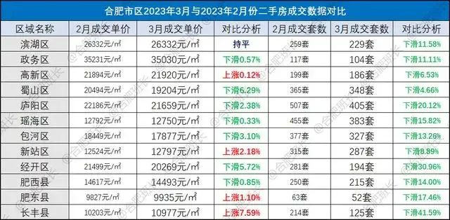 滨湖下滑11.58%,政务下滑11.11%,庐阳下滑20.12%,长丰县更是下滑41.59%。