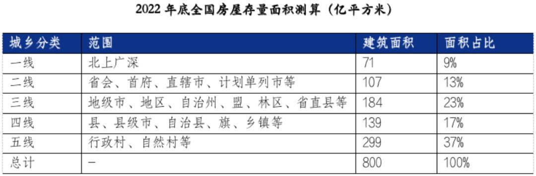 基于国家统计局和各地房产普查情况,上海易居房地产研究院曾测算2022年底全国房屋建筑面积约为800亿平方米。