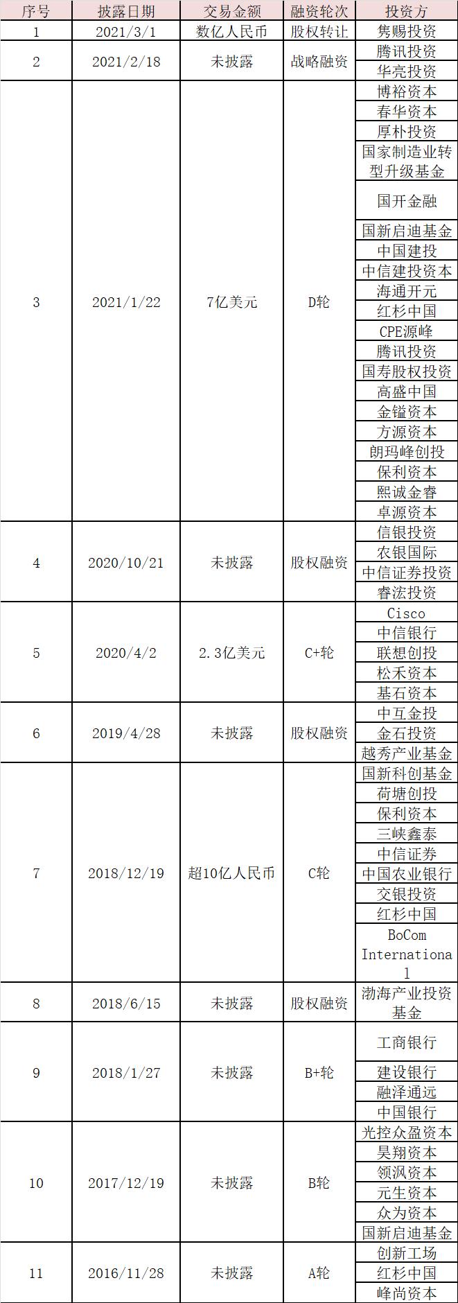 这家诞生于2014年的人工智能软件公司,细数其背后投资方可谓让人眼花缭乱——11轮融资,包括红杉中国、腾讯投资、越秀产业基金、春华资本、博裕资本、保利资本、厚朴投资、国家制造业转型升级基金、国开金融、海通开元、国寿股权投资、高盛中国、方源资本、朗玛峰创投等均参与其中。此外,第四范式也是第一家由工商银行、农业银行、中国银行、建设银行等国有银行投资的创企。