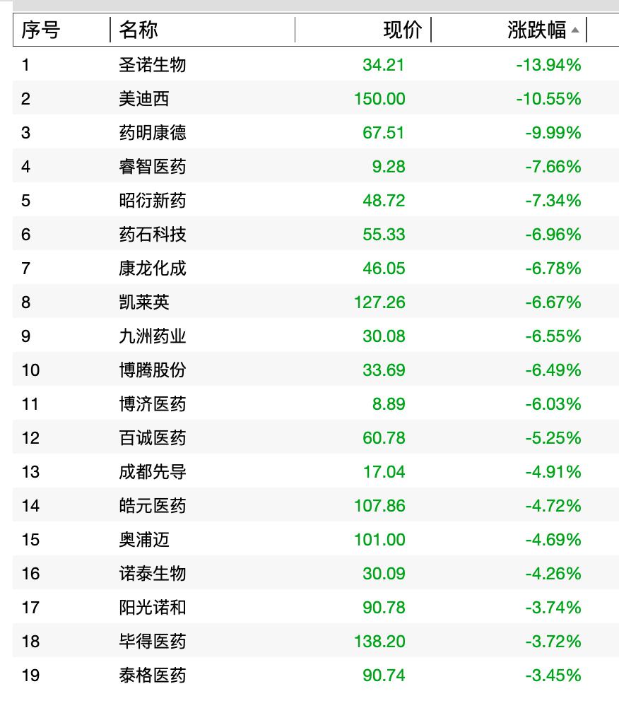 图:CRO指数成分股在4月25日全部收跌 资料来源:wind,36氪