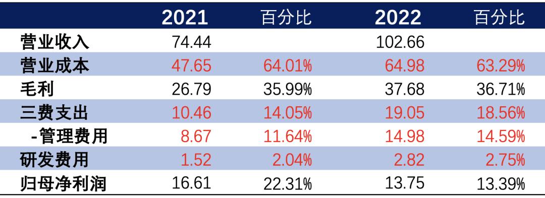 研发费用虽然增幅不小,但占比较低,研发费用率在22年抬升了0.71pct,对净利润影响并不大。