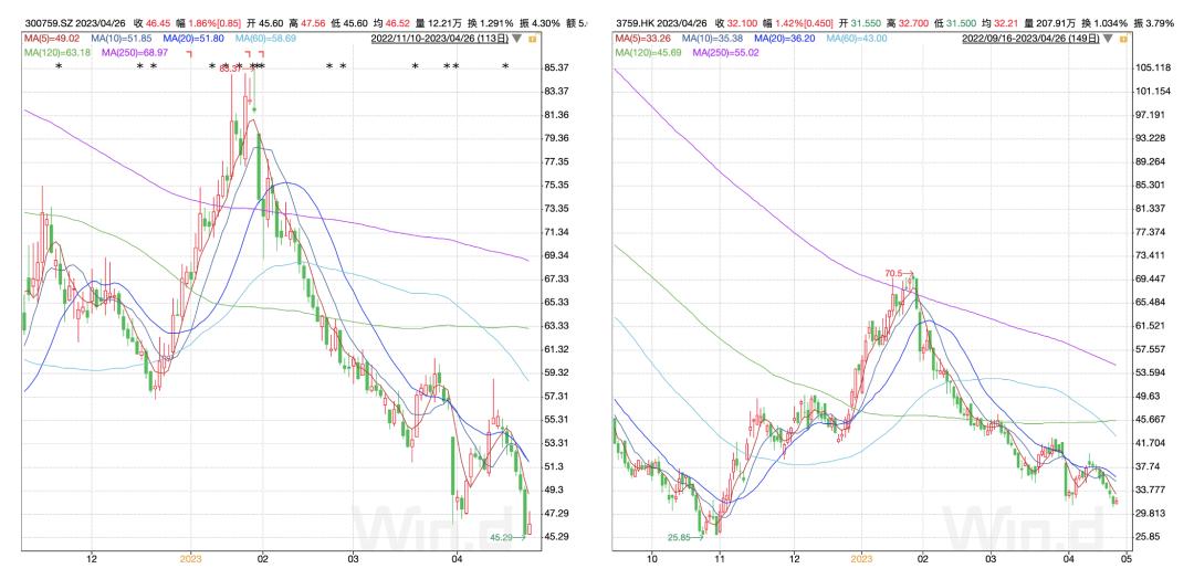 因此,从基本面的预期来看,康龙与药明康德在当下似乎呈现出微妙的反向,不受大订单干扰,短期的人效问题有机会解决,康龙有望在年内保持目前的增速水平,利润也有修复的可能。那么,现在是否可以逆势买入基本面更有看点的康龙呢?