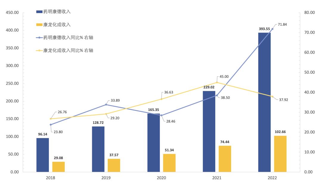 图:康龙化成与药明康德收入对比 资料来源:wind,36氪