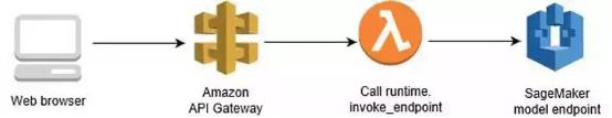 当客户端对 API Gateway 执行 API 调用时就会触发 Lambda 函数,并在完成函数解析之后将其发送至 SageMaker 端点。之后由模型端点执行预测,把信息发送至 Lambda。Lambda 再做解析,将结果发送至 API 并最终返回至客户端。