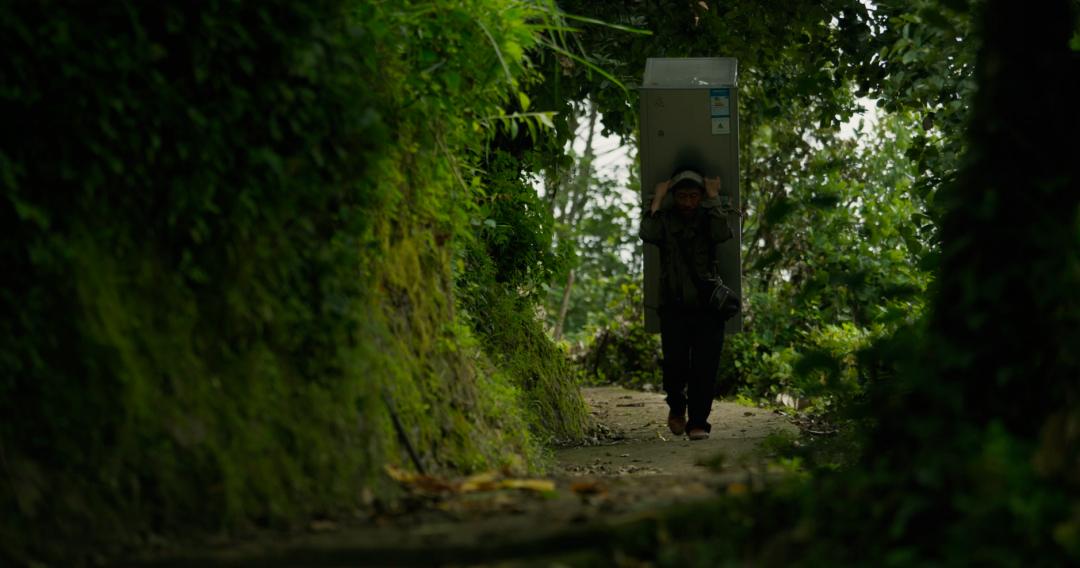 在《落地生根》成片中,我们看到山路艰险带来的不便:山上村民家里的冰箱坏了,打电话请人来修,对方却因为“走你们沙瓦的山路,我害怕”而拒绝上门,村民只得单枪匹马把比人还重的冰箱背下山,脊背都磨出了血;