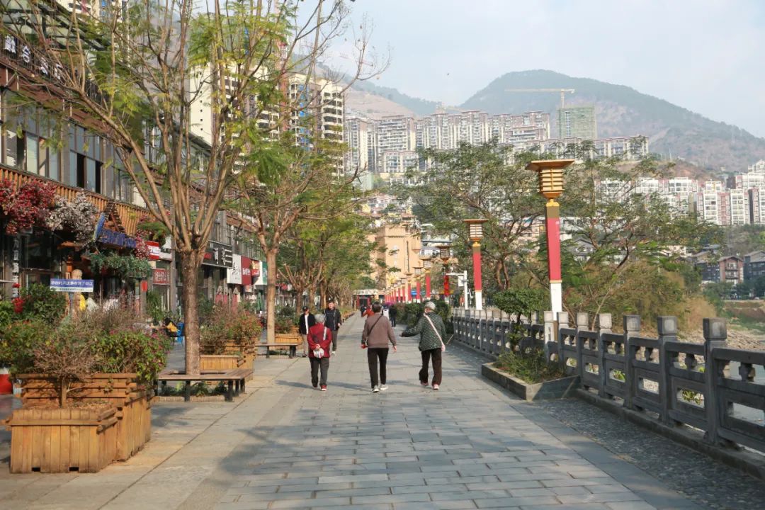 怒江西岸的新城区,人们在清晨阳光下散步。/笔者 摄