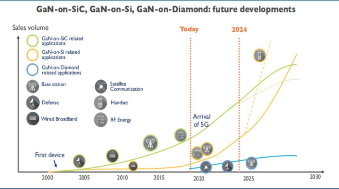 GaN-on-SiC和GaN-on-Si应用的发展趋势(来源:YOLE)