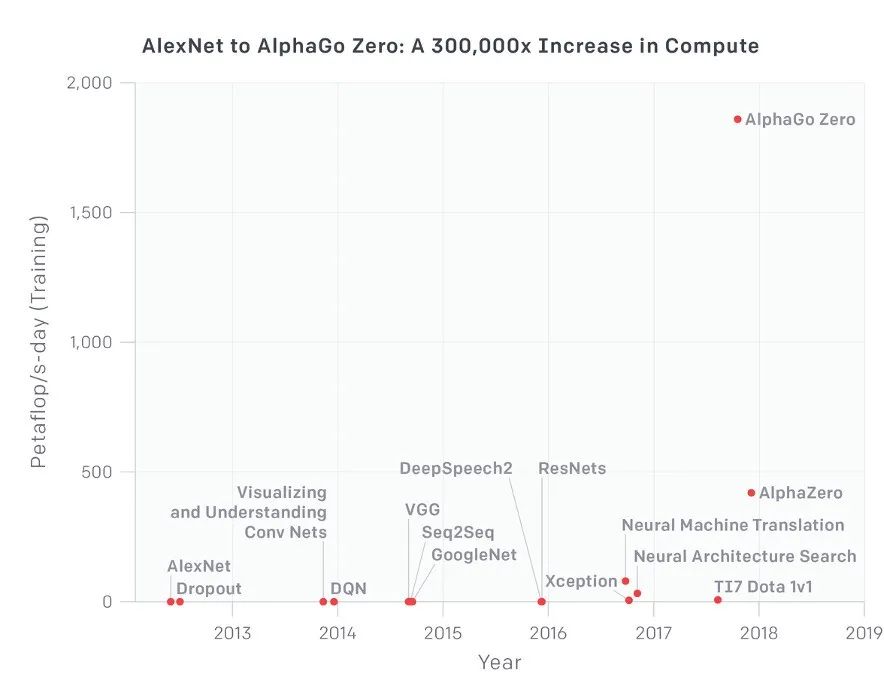 大模型发展的三要素:算法、算力、数据。其中算力是数字时代的“石油”,未来的缺口一定会越来越大。自2012年开启黄金时代后,AI对算力的需求开始呈现指数级增长。从2012年的AlexNet,到2017年的AlphaGo Zero,算力消耗足足翻了30万倍。