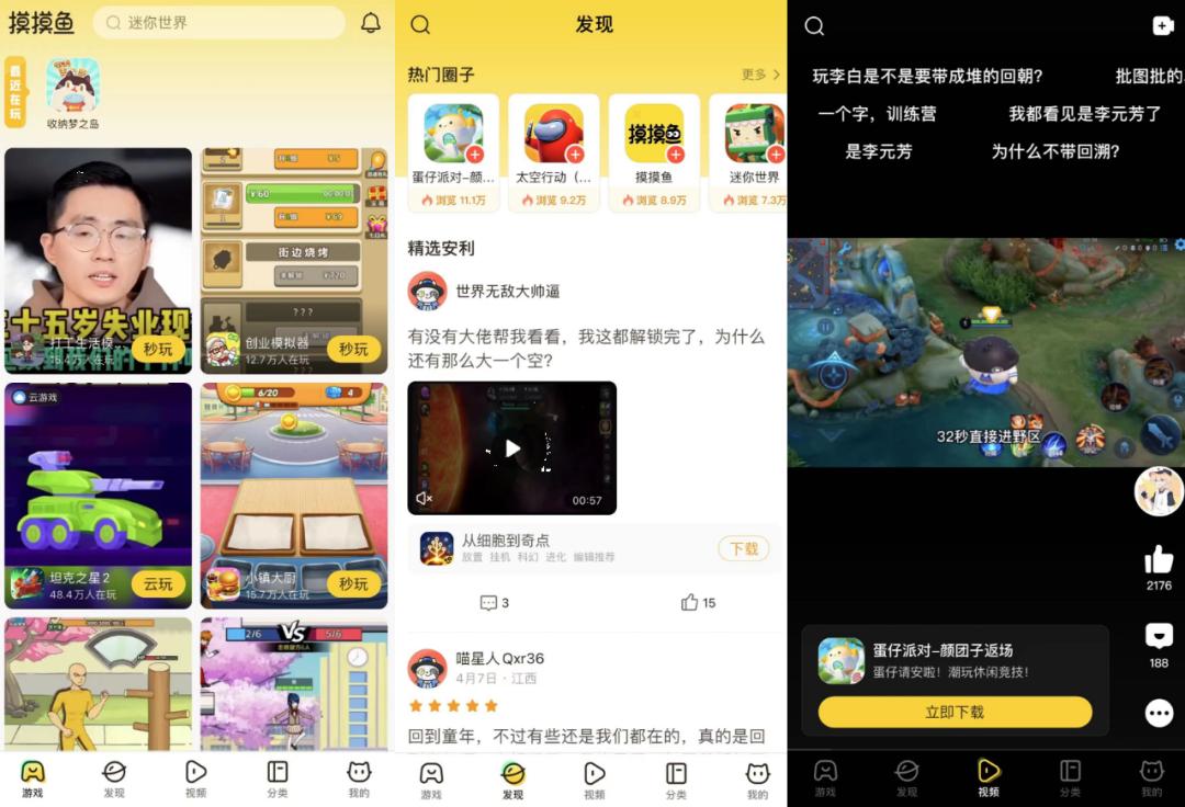 先前对于《摸摸鱼》已经进行过多次介绍。《摸摸鱼》是字节跳动花了两年时间迭代出来的产品,集合了休闲游戏整合、重度游戏分发、游戏社区、云游戏等功能。到目前为止,应用的iOS版本已经上线接近2年时间,功能配备相对完善。
