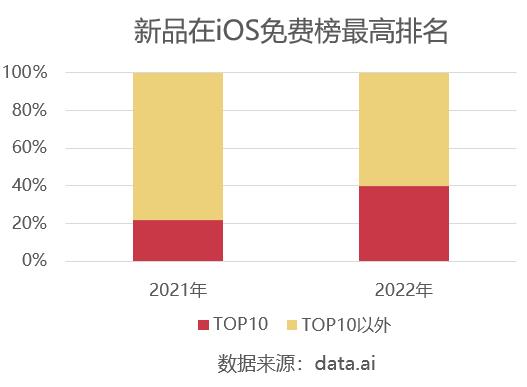 首先是合作产品的筛选更加严格和谨慎了,相比以往更加注重精品化。在这100款收录的游戏中,发行于2022年的有25款,其中进入过iOS免费榜TOP10的有10款;而发行于2021年的有46款,进入过免费榜TOP10的同样也只有10款,爆款率变得更高一些。