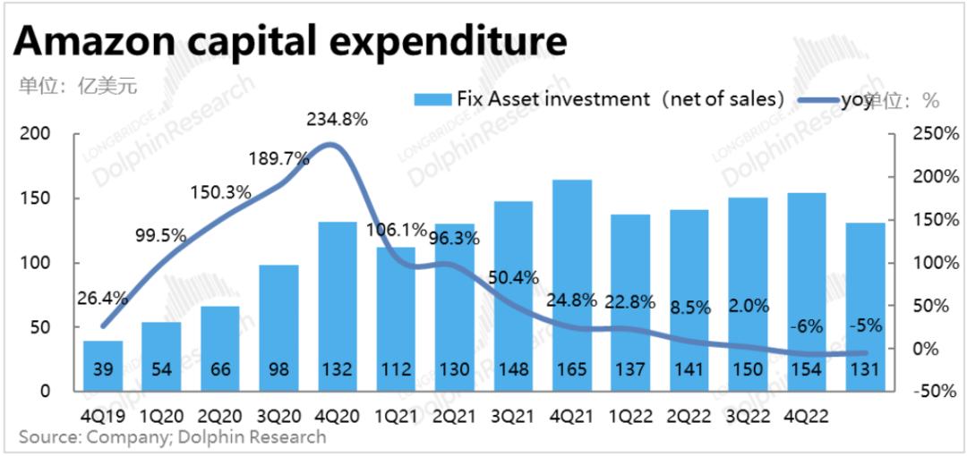 4. AWS滑落深渊?:从早先公布的微软财报中并不好看的Azure增速已可预见AWS的表现也难有起色。本季度AWS收入214亿美元,增速环比进一步下降4pct到20%,同时营收绝对值本季环比减少了0.2亿美元,实属海豚君可追溯的历史首次。可见全球云服务需求的疲软程度相当严重。