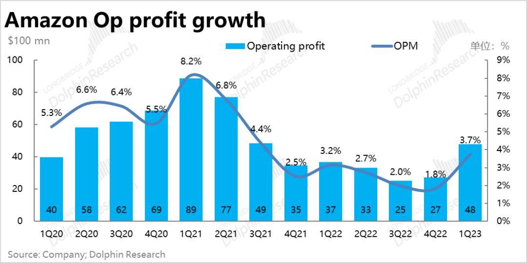 3. 零售板块触底反弹?:长期磨底的零售业务逐渐走出低谷的趋势也在继续。本季亚马逊的零售板块实现收入1060亿美元,同比增速为8%,环比上季度提升了约1pct。