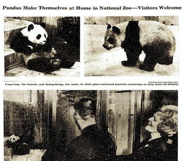 大熊猫抵达华盛顿时,虽然正下着大雨,但依然有近万人冒雨迎候,总统夫人亲自出席熊猫馆揭幕式。