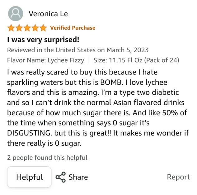 比如,在美版亚马逊上,有网友评价道:“我是二型糖尿病患者,所以一般不喝亚洲风味饮料,因为里面的糖太多;在50%的概率下,标着0糖的饮料是不好喝的,但这个很厉害,甚至让我怀疑是否真的0糖。”