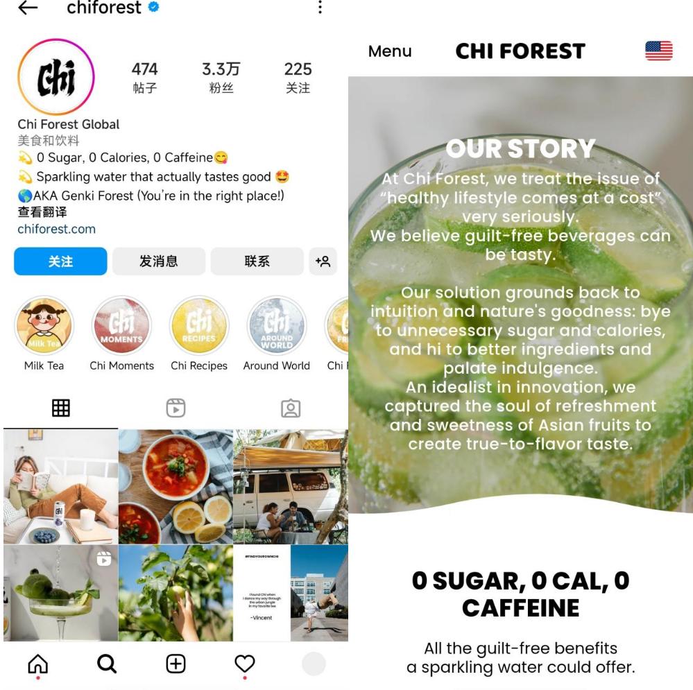 其中,元气森林的Instagram账号,以及美国市场官网,使用的名字都是“Chi Forest”。对此,有网友表示:“‘Chi’就是‘気’的音译,采用这个名字,更容易让外国人理解品牌。”
