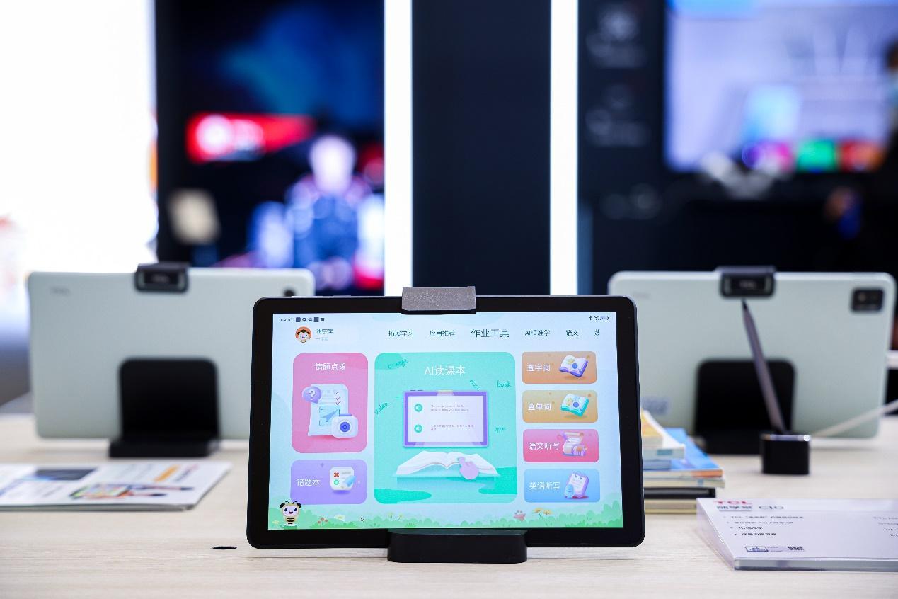 展区现场还展示了TCL随学堂C10 AI护眼学习机,屏幕采用独家“未来纸”护眼显示技术,呵护孩子双眼。该项技术拥有20多项核心护眼专利,获得德国莱茵TUV护眼认证。该产品还搭载AI精准学体系,能够引导孩子自主学习。