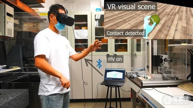 目前,科研人员已经验证将WeTac用于VR和AR场景的效果,还实现了通过BLE通信与机械手同步。用户可以在不同的场景中感受虚拟物体,例如在运动训练中抓住网球、触摸仙人掌,或是感受老鼠等物体手上移动。