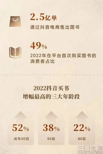 首先,不妨先来看看一组数据。在2022年“世界读书日”前夕,抖音方面发布的《抖音电商图书行业发展数据报告》显示,2021年每天有超过45万本书在该平台售出,也就是其一年卖出了1.64亿本书。在今年的“世界读书日”前,抖音同样也发布了《2023抖音读书生态报告》,其中显示,2022年抖音平台共售出2.5亿单图书。