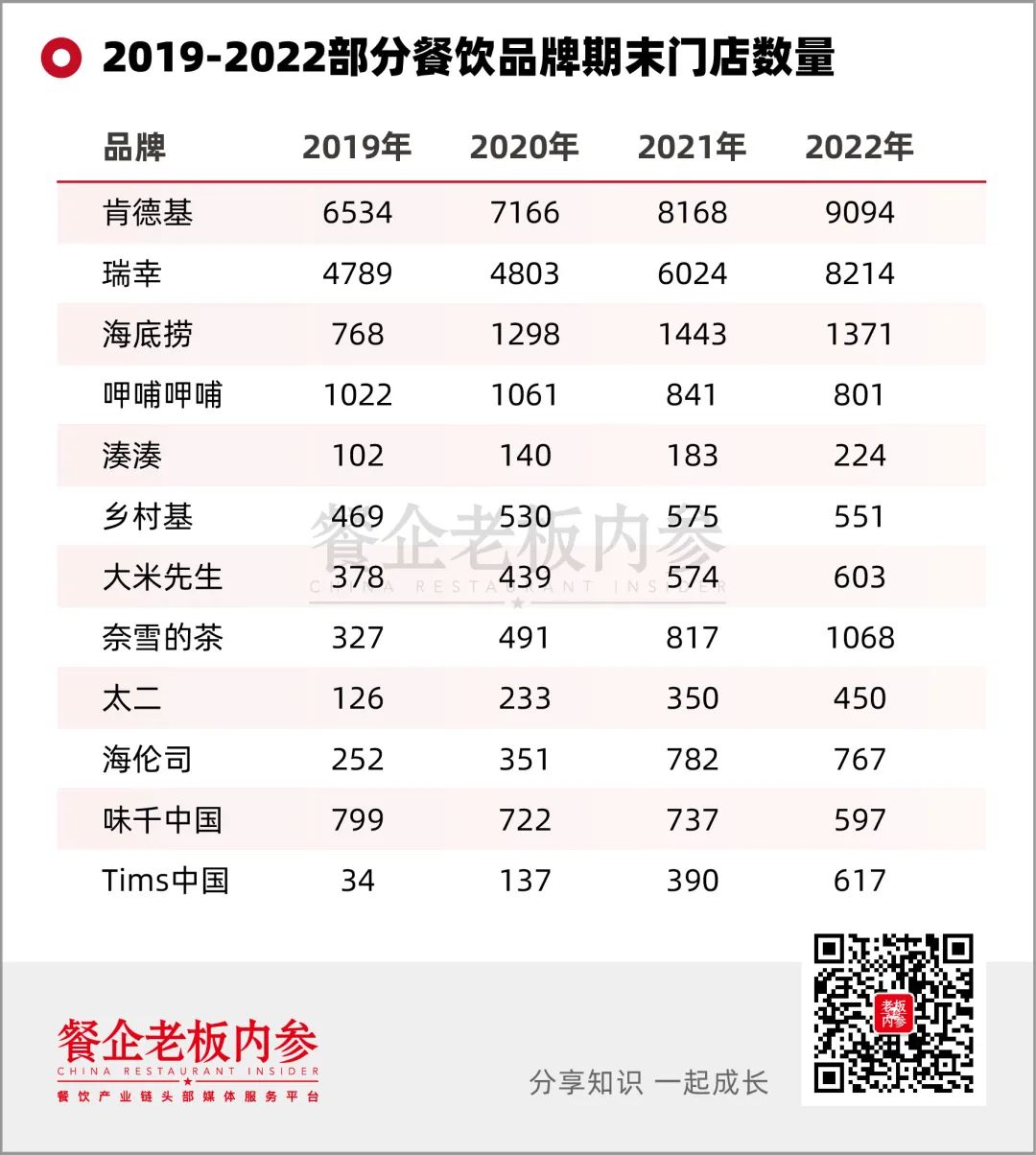 肯德基、瑞幸、奈雪的茶、Tims中国开店速度未减,不断加码试图占领更大市场份额。百胜中国财报称,肯德基门店数目约为其最接近的竞争对手两倍。内参君预计,肯德基和瑞幸咖啡有很大概率将在2023年底达成万店连锁。