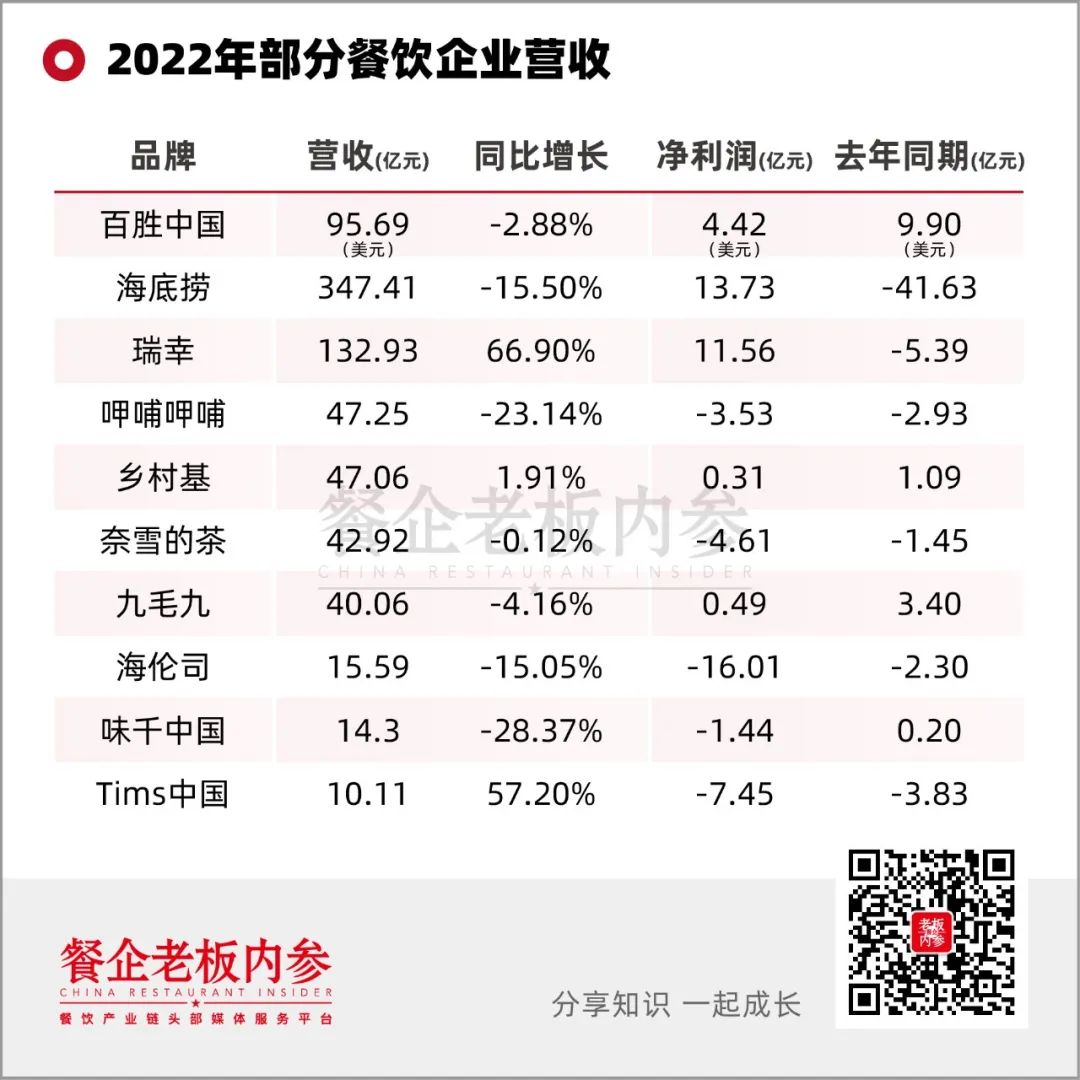 然而,三年疫情让餐饮大盘出现了令人气馁的倒退,一批充满活力的品牌也归于沉寂。尤其是2022年,线下消费场景受阻,行业经历较前一年更为严苛的考验,收入端普遍承压,盈利波动性大。