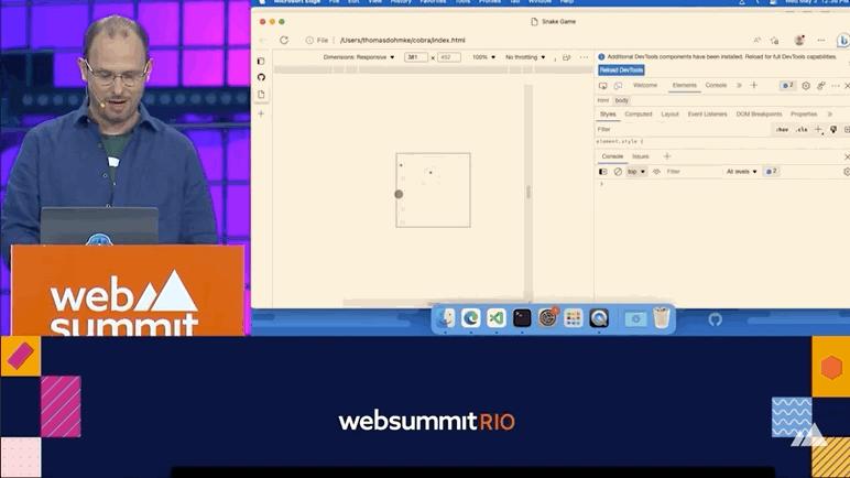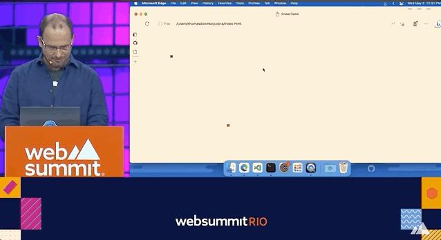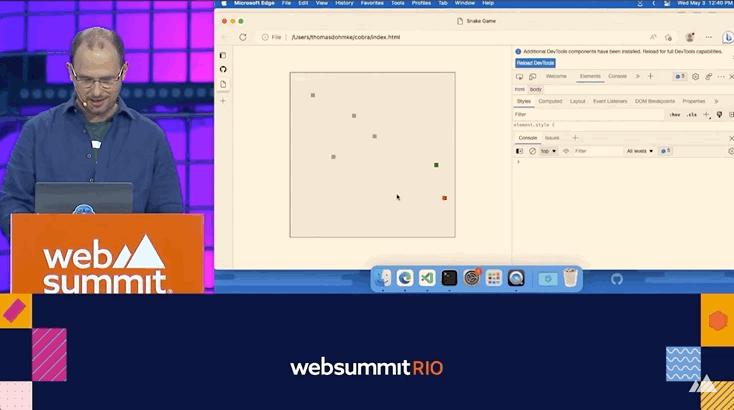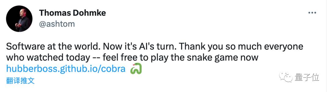 演示的重头戏是写一个贪吃蛇小游戏,开始前GitHub CEO托马斯·多梅克(Thomas Dohmke)就先立下flag,要在十几分钟内搞定。