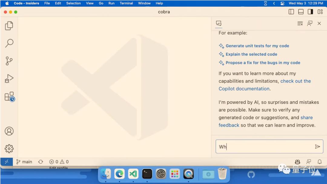 和之前介绍中的一致,Copilot X是作为AI助手内嵌在VS Code中。