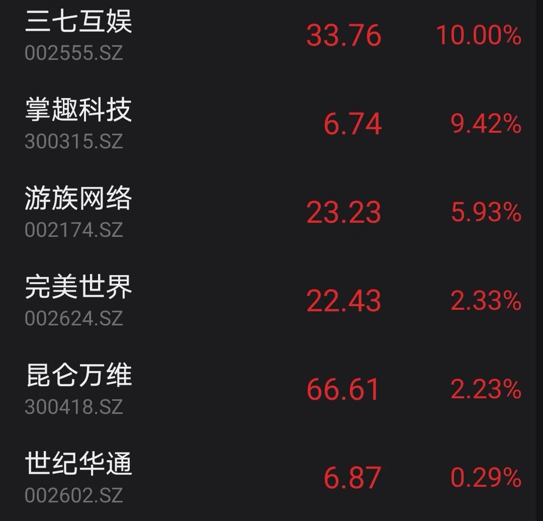 游戏、传媒股继续活跃,长江传媒3连板,三七互娱一字涨停,掌趣科技涨超8%,冰川网络、巨人网络、顺网科技、游族网络、皖新传媒、南方传媒等纷纷高开。