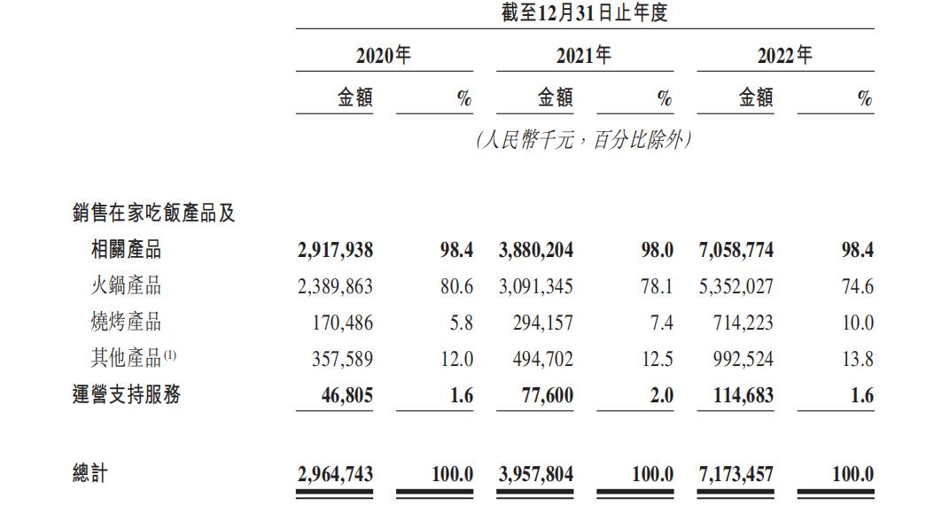 从定位来看,锅圈食汇似乎正在转型为预制菜社区便利店。不过,从财务数据来看,尽管锅圈食品的产品体系有8大类别755个SKU,但火锅食材依然是锅圈食汇的主要收入来源,烧烤及其他产品收入占比不足1/4。同时,锅圈食汇还在招股书中表示,2020年至2022年的快速增长有赖于门店网络的扩张。
