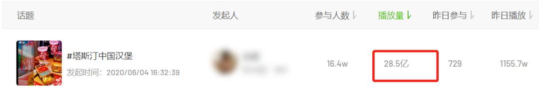 飞瓜数据显示,抖音关注度最高的“塔斯汀中国汉堡”相关话题已达28.5亿次播放量。