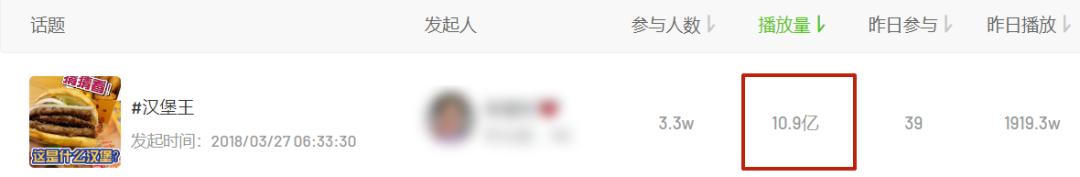 汉堡王话题拥有10.9亿次播放,德克士则有10.5亿次播放/图源:飞瓜数据