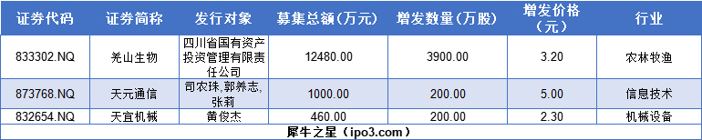 新三板本周3家公司完成股票增发上市,共募资1.39亿元