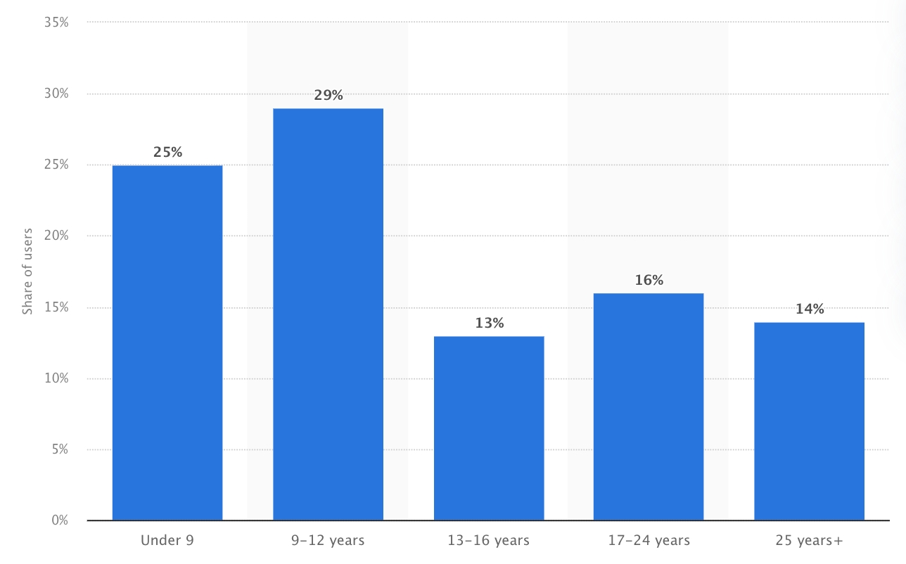 按年龄划分的 Roblox 用户;资料来源:Statista