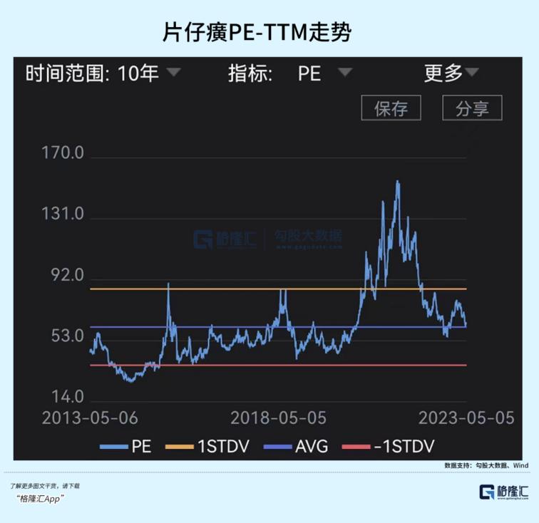 目前,片仔癀PE-TTM为64.7倍,位于最近10年来估值中线水平,较2021年7月估值泡沫时的150倍大幅收窄。从这个维度看,现在片仔癀估值基本属于合理水平。