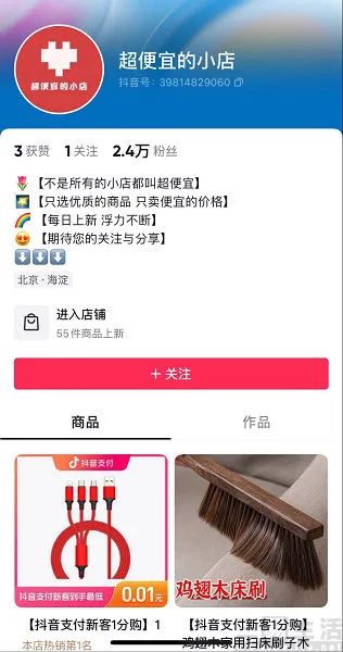 自拼多多凭借价格优势从下沉市场杀出重围后,价格战似乎又重新回到了国内的电商行业中,例如阿里推出了淘特、京东上线京喜,甚至后起之秀抖音,也要加入低价电商的行列了。日前有消息显示,一家名为“超便宜的小店”的店铺出现在抖音上,还打出了“只选优质的商品,只卖便宜的价格”的宣传口号,并且其所售卖的商品中,0.01元的超低价更是比比皆是。