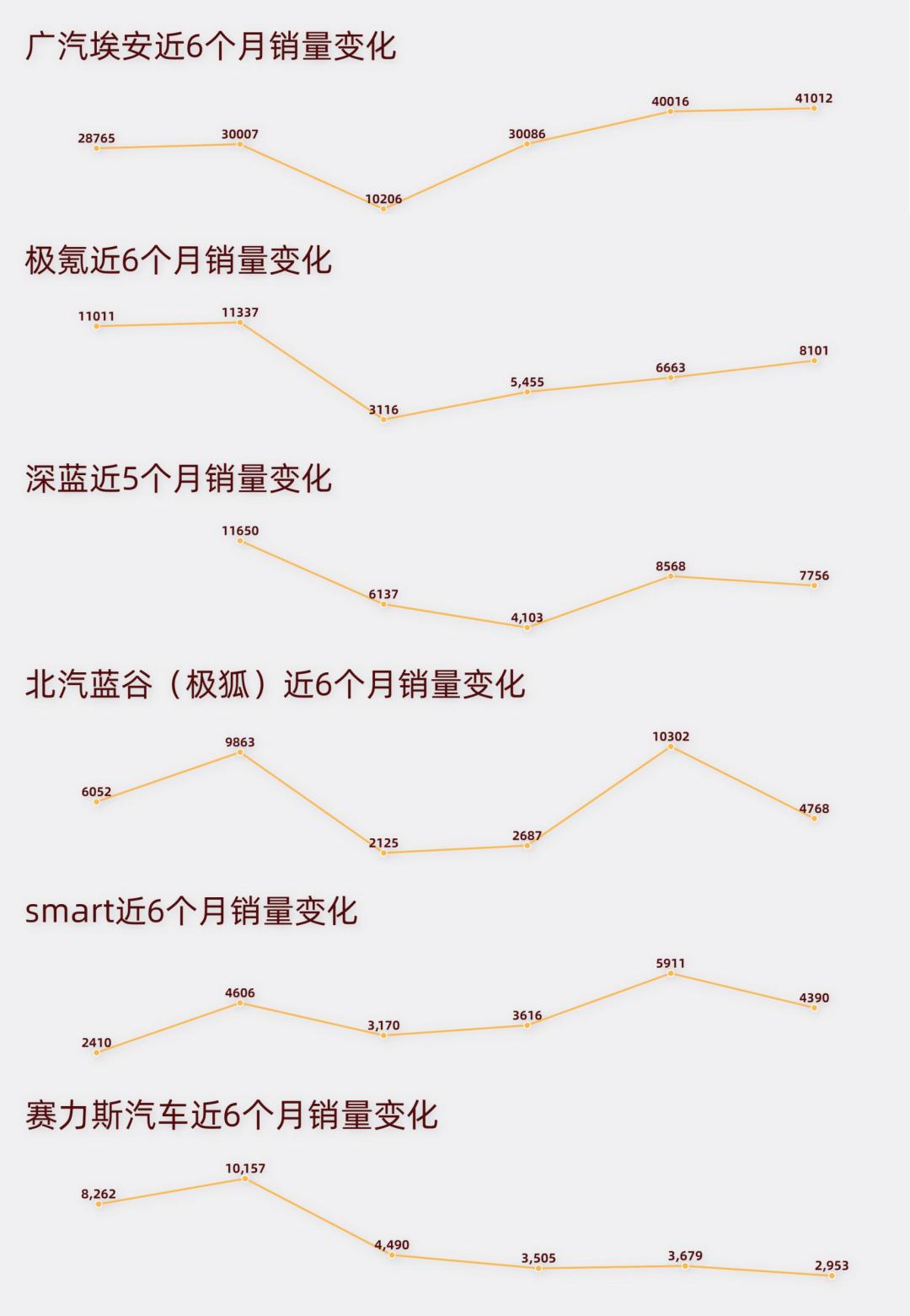 比亚迪之下,上汽、吉利、长安的新能源汽车月销量也在3-5万辆之间,不过这三家机构都是多品牌战略,目前并未披露新能源子品牌的具体销量。