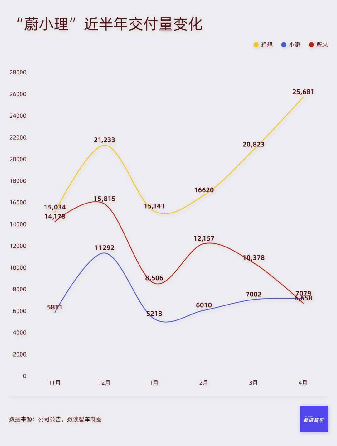 4月开始,理想L7 air开始交付,按照预计,从这款产品开始,理想月交付超3万辆是保底。