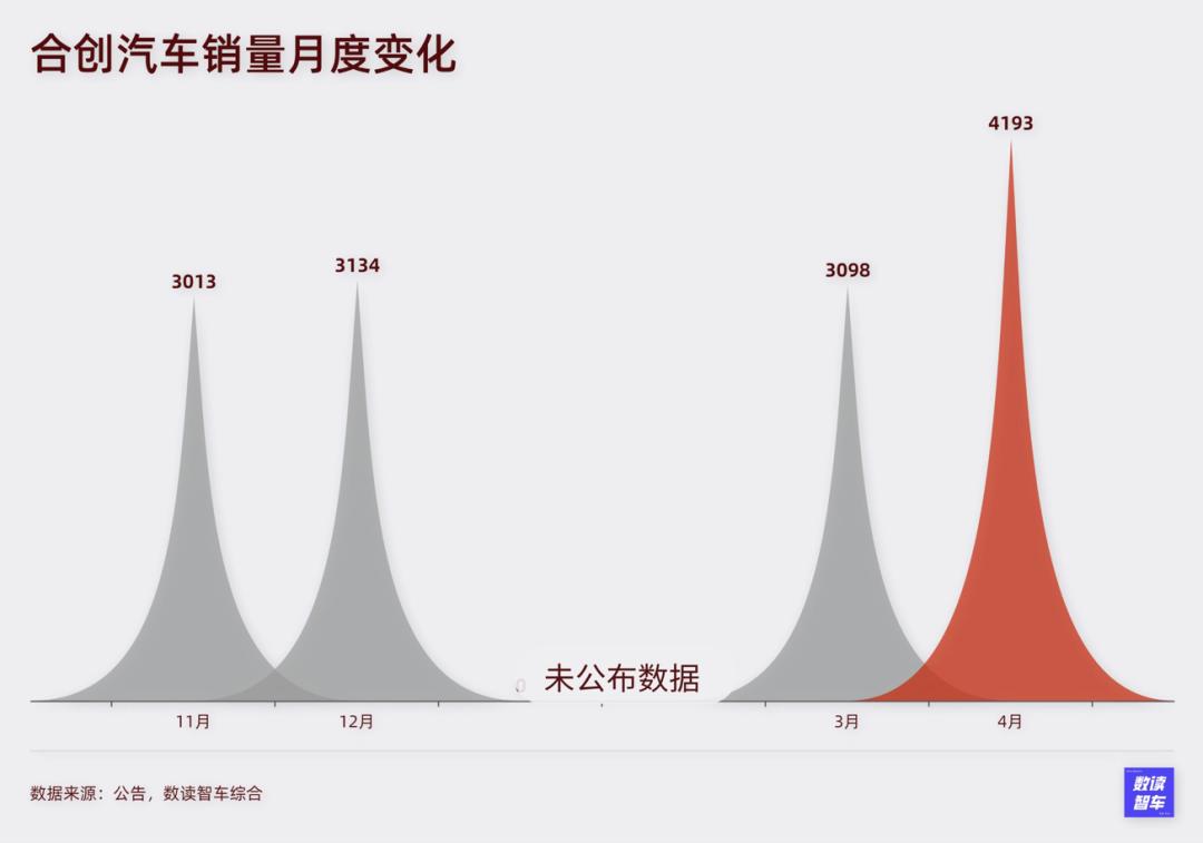 4月,合创汽车交付量达到4193辆,环比增长35.3%,是目前已公布销量车型中增速最快的车企之一(也与3月基数小有一定关系),取得了新的突破。