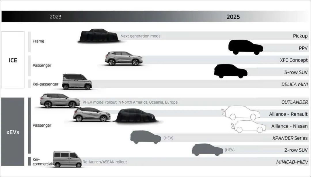而作为一家身在日欧联盟内的汽车企业,三菱自然不会落下太多。在三菱“挑战2025”计划中,关于电气化进程,其宣称在2025年,会与雷诺、日产分别推出一款插电式混动车型;在2024-2025年间,共会推出2款全新SUV车型,均采用HEV混合动力系统。