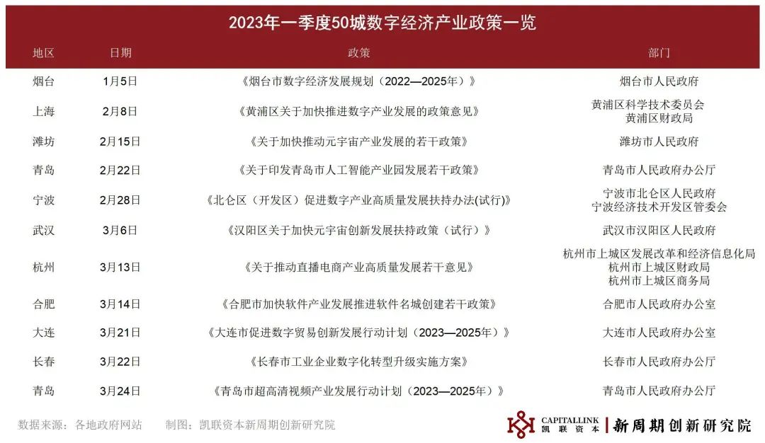 凯联资本新周期创新研究院:凯联50城产业政策季度跟踪报告