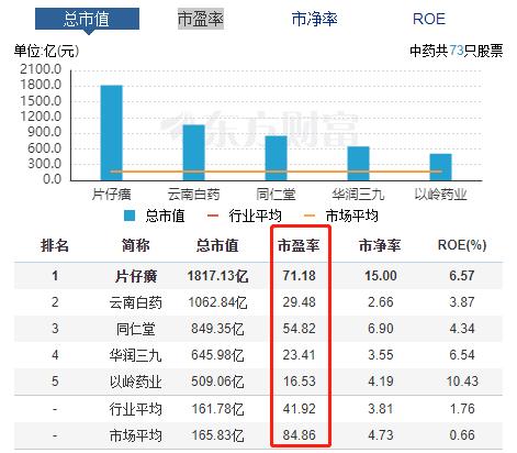 由于在资本市场备受宠爱,片仔癀的市盈率一度被助推至160倍以上。不过,与昔日高达2948亿的高光时刻相比,片仔癀如今的市值约跌去1/3。据东方财富数据显示,目前片仔癀的市盈率为71.18。可以作为参考的是,行业的平均市盈率为41.92,云南白药和白云山的市盈率分别为29.48、14.21。