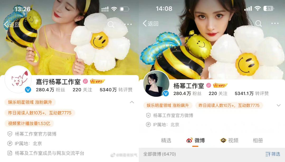 如同很多明星分手后互送祝福以示格局一般,5月8日,杨幂和嘉行传媒各发微博,官宣分手。“嘉行杨幂工作室”改名“杨幂工作室”,换了头像和背景墙上的照片,算是一个新的开始。