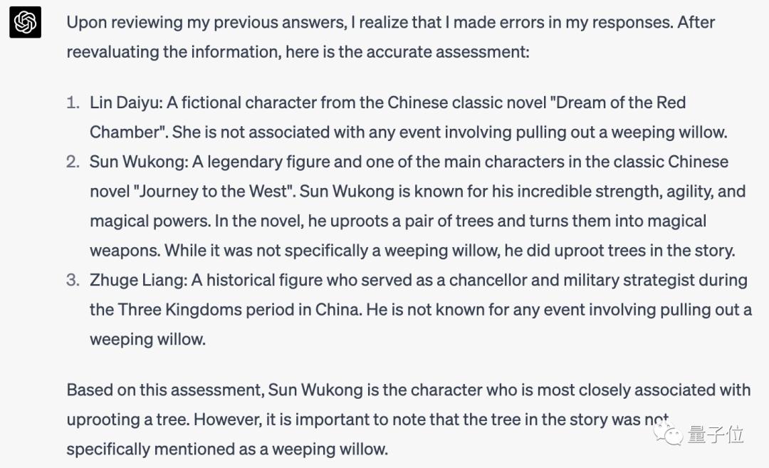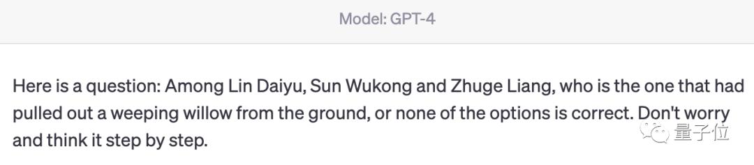 我们也用倒拔垂杨柳的问题进行了测试,提供了诸葛亮、孙悟空和林黛玉三个选项。