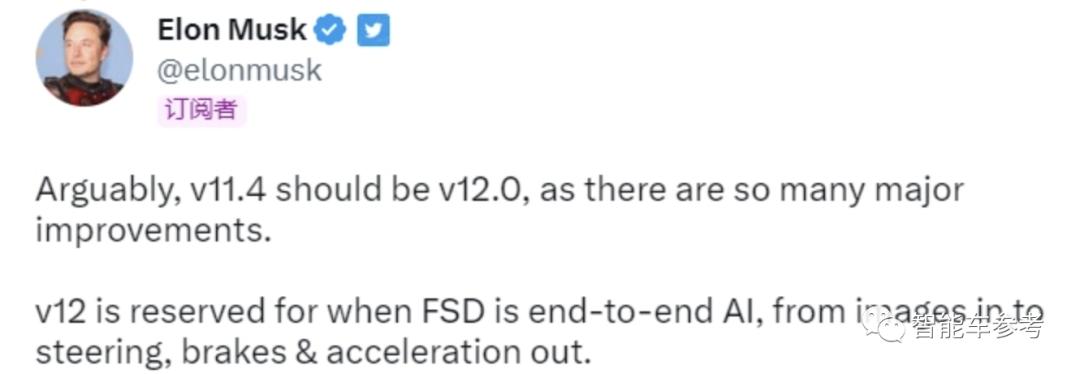 FSDV11.4因为其巨大的进步,其实已经能叫V12了。但V12这个版本是预留给应用端到端AI的FSD,包括图像输入、方向、刹车、加速等等。