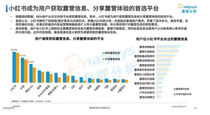 (小红书成为用户获取露营信息、分享露营体验的首选平台 图源:易观分析)