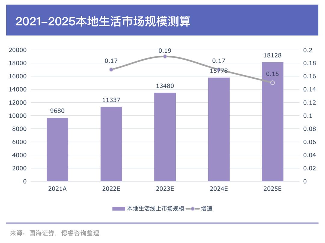 小红书此刻入局,无疑是看上了本地生活万亿级别的市场:据国海证券预测,2025年中国本地生活市场规模将超过1.8万亿元。