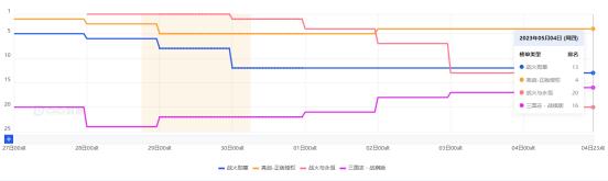 今年3月,《Warpath》凭借2周年特别活动和游戏版本更新,当月海外收入环比增长45%,位列Sensor Tower 2023年3月中国出海手游收入榜第26名,并位居3月出海手游收入增长榜第9名。根据Sensor Tower测算,游戏当前海外总收入已超过了2亿美元。