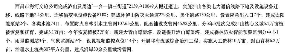 信息显示,西昌海河文旅投资公司成立于2013年8月,为西昌市国有资产经营管理有限责任公司全资控股,经营范围包括组织文化艺术交流活动;企业形象策划;工程管理服务;游览景区管理;名胜风景区管理等,而“21海河V1”扶贫专项公司债券之所以能在2020年11月23日国家级贫困县全部脱贫摘帽后仍或审核通过,或归因于西昌泸山森林火灾灾后重建项目的重要性和迫切性。