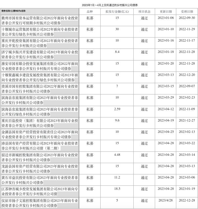 数据显示,2023年1~4月,上交所审核通过的乡村振兴公司债数已达17只,拟发行总金额为201.77亿元(已接近2022全年上交所合计发行乡村振兴公司债规模);聚焦4月,当月获上交所审核通过的乡村振兴公司债为9只,拟发行金额合计91.37亿元,开闸放水态度由此可见一斑。