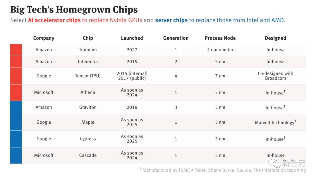 根据外媒The Information的报道以及其他来源,这三家大厂现在已经推出或计划发布8款服务器和AI芯片,用于内部产品开发、云服务器租赁或者二者兼有。