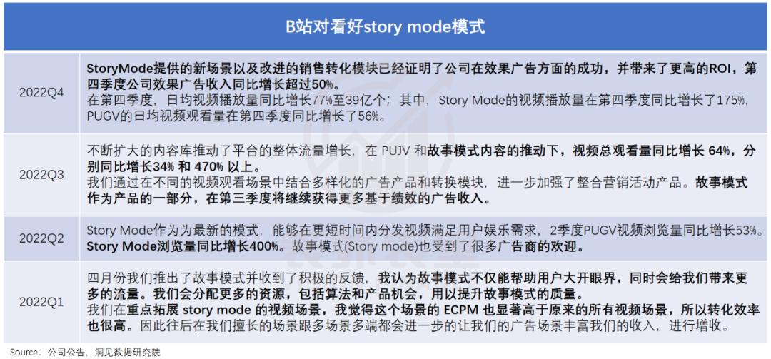 这样一来,短视频内容产出效果显著。据2022Q4电话会议:Story Mode VV增长超过170%。